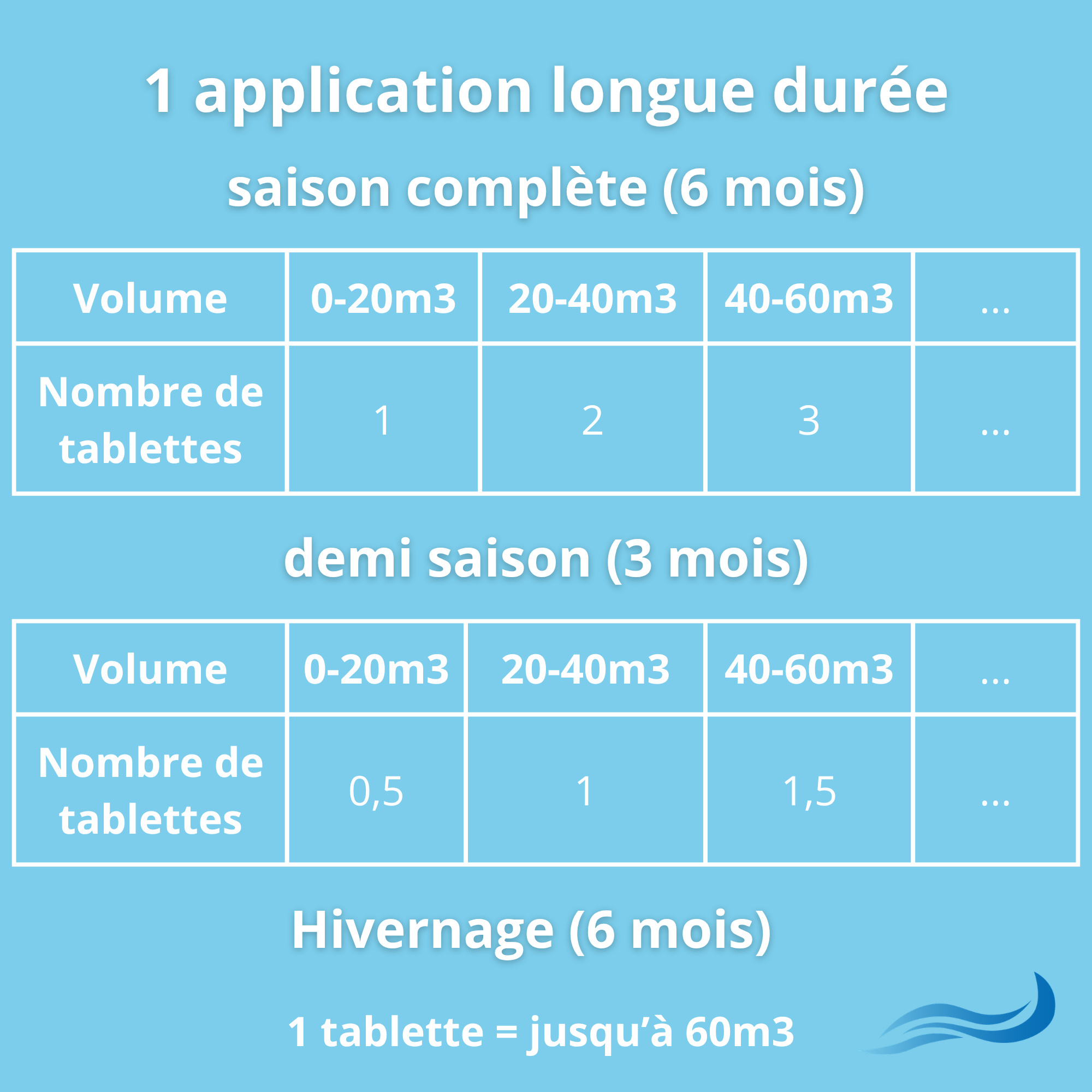 Une tablette traite jusqu’à 20m3 d’eau pour 6 mois.
